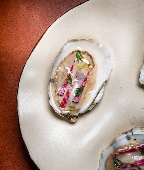 This may seem like an antiquated concern for chefs in an era of global food distribution systems, but it’s an all-consuming preoccupation for Oyster Oyster, a restaurant named after two ingredients—a bivalve and a mushroom—known for their ecosystem benefits. This radically seasonal, regional restaurant sources its ingredients exclusively from the ocean, climate-adapted farms, and wild plants of the Mid-Atlantic.