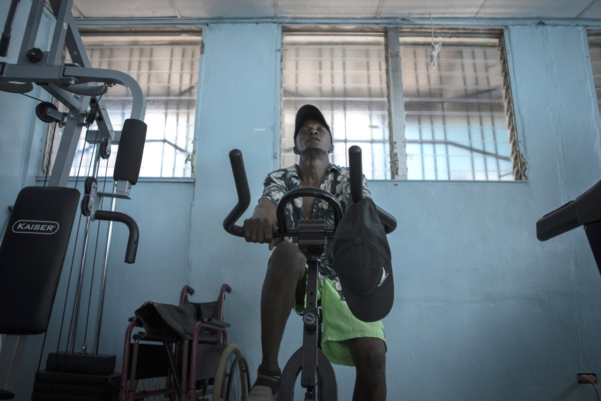 Guerrero recommended we visit the Puerto Lempira hospital to understand the situation better. It was painted bright yellow, and a concrete entry walkway led to a small blue and white rehabilitation room littered with used exercise equipment. A dozen partially paralyzed divers worked on different exercises in the afternoon heat.