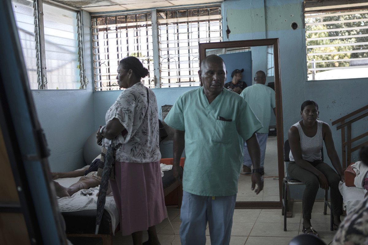 Left: Porfirio Valeriano Carrington experienced partial paralysis in his legs after a diving accident. He explained that when diving, “without a watch, without any equipment, you don’t know where you are.” Right: Dr. Henzel Roberto Pérez, the deputy director of information management at the hospital, said that patients who recuperated and returned to diving often experienced decompression sickness a second time, which left them more severely paralyzed than the first time. “It is common to see the same patient several times,” he explained. (Photo credit: Jacky Muniello)