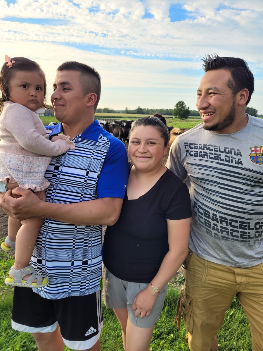 At right, Efrain, with his brother Ervin (at left), who works at the same dairy. Also pictured are Ervin’s wife and daughter.