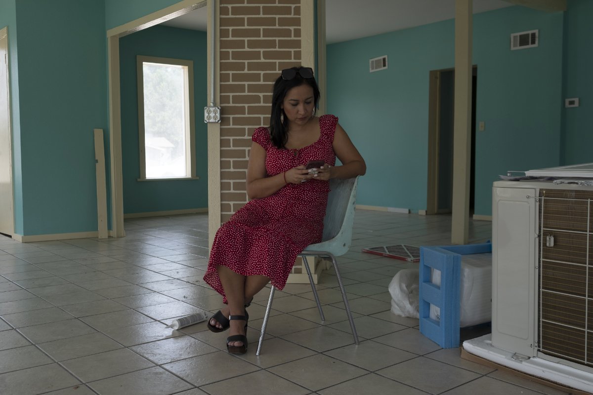 Magaly Licolli, the co-founder of Venceremos, a worker-based organization in Arkansas that ensures the human rights of poultry workers. Licolli sits in the new Venceremos center for workers that will open in Springdale, AR in the fall of 2022. (Photo by Jacky Muniello for Civil Eats)