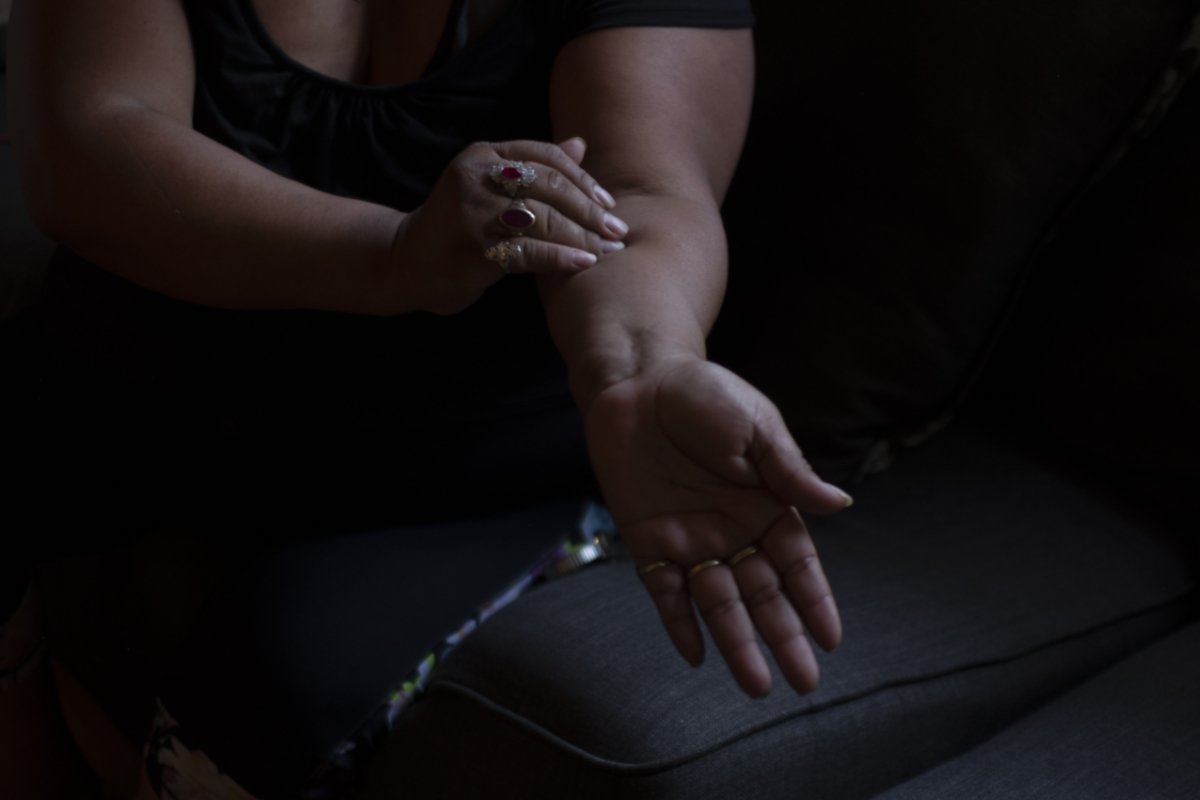 Tyson doctors have confirmed that this worker needs carpal tunnel surgery in both arms; however, Tyson has told her the company will not cover the cost of the surgery. (Photo by Jacky Muniello for Civil Eats)