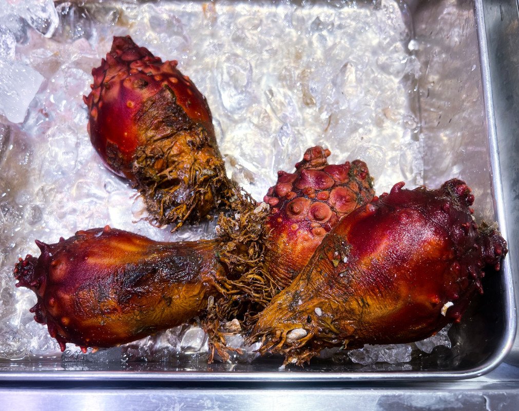 While not all tunicates are edible, many of the varieties currently invading Maine’s coast are, including clubbed tunicate and members of the Ciona species. Tunicate meat is slightly chewy, reminiscent of calamari. Wild tunicate does look unappetizing, however. The fleshy tubes growing in Maine’s waters are brownish, barrel shaped, and flaccid.
