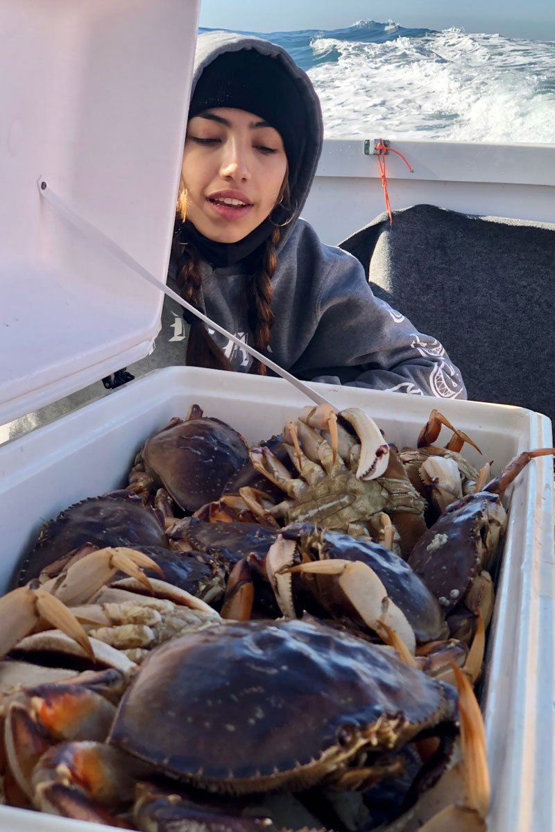 We drive to meet my grandpa on his boat, docked in the Sausalito harbor, 30 minutes north of San Francisco. It’s still dark out, but my grandfather’s energy says otherwise. The motor is already running, and we take off. Streaks of sunrise peek out from the horizon as we pass under the Golden Gate Bridge. The pots have been soaking, sitting on the ocean floor since yesterday morning, and they should be full of Dungeness crabs that fell for our delicious trap of stinky old chicken meat.