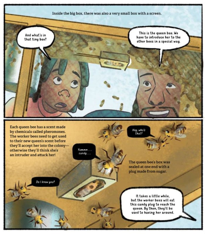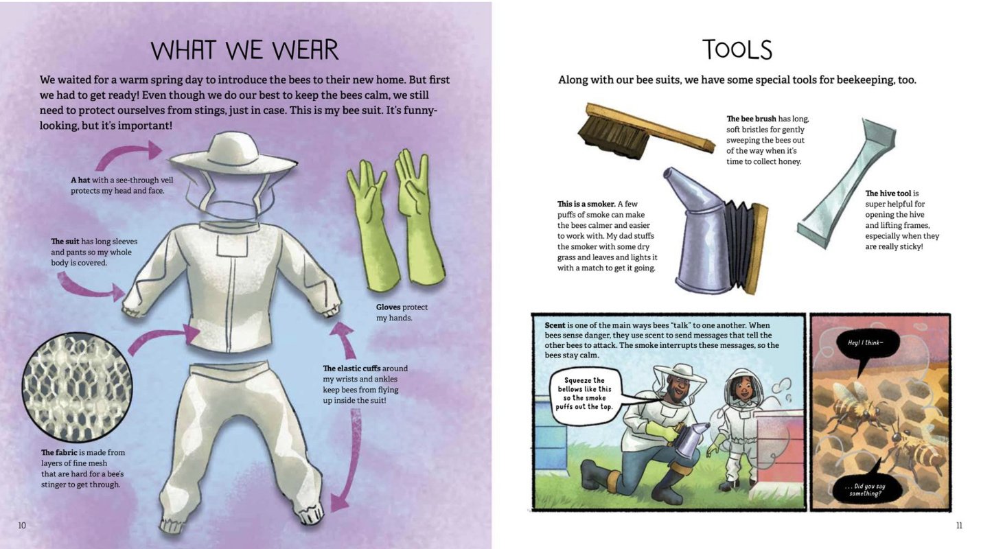 I don’t think there are many books that are tailored to teaching kids about farming. This book, you can use it as a guide—it has a glossary in the back—and you can use it to become a beekeeper. It caters to different learning styles too, because if you’re not a heavy reader, the illustrations can guide you through. I wanted it to be an inspiration for children.