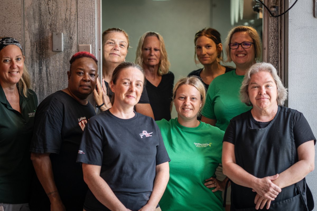 The team of women who unload boxes, prep meals, preserve vegetables, and package bags of meals to be distributed all summer long in Caroline County. (Photo credit: Colin Marshall)