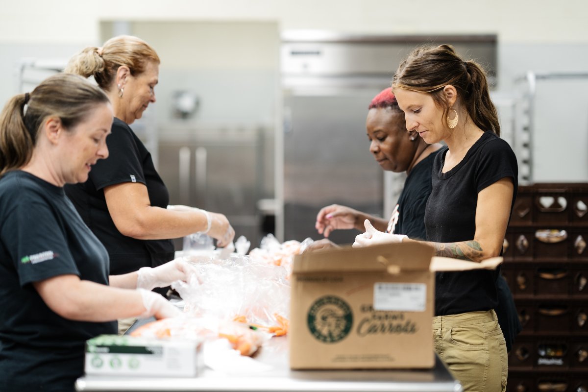 Vegetables like baby carrots have to be packaged into individual serving sizes before they’re added to meal bags. (Photo credit: Colin Marshall)