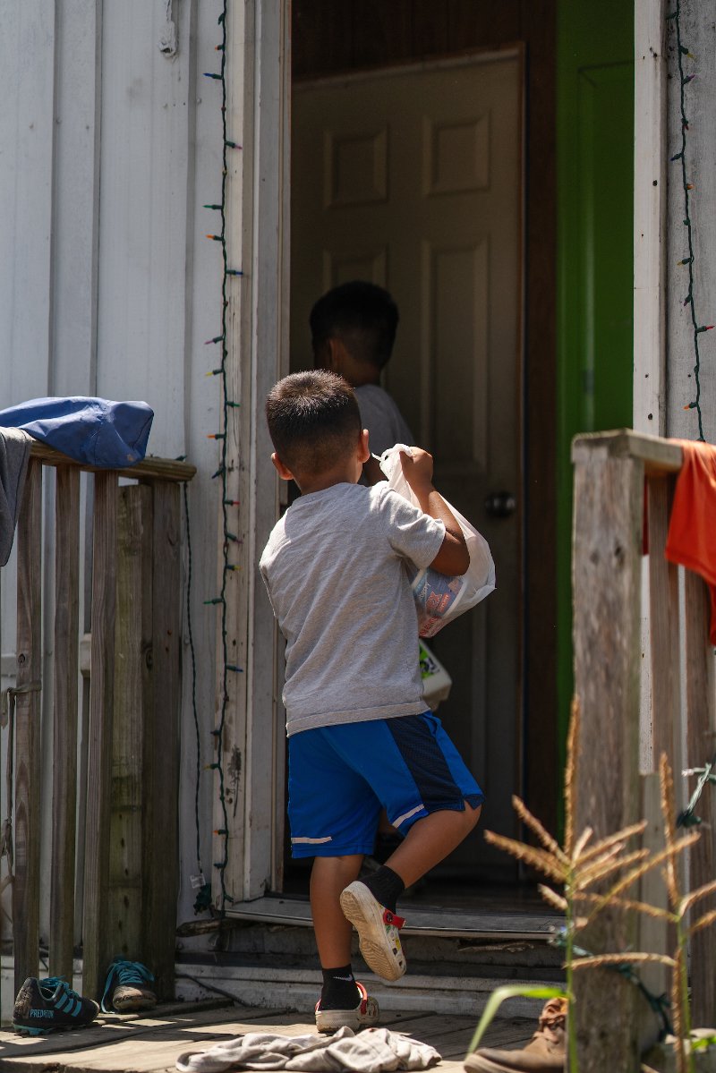 Sweat dripped off her forehead as she carried bags of food and milk jugs to their doorsteps, tallying each on a clipboard with a smile. Families expressed their thanks and then hurried back inside trailers plagued by disrepair as the sun bore down, the strained hum of rusted, aging air conditioners filling the air.