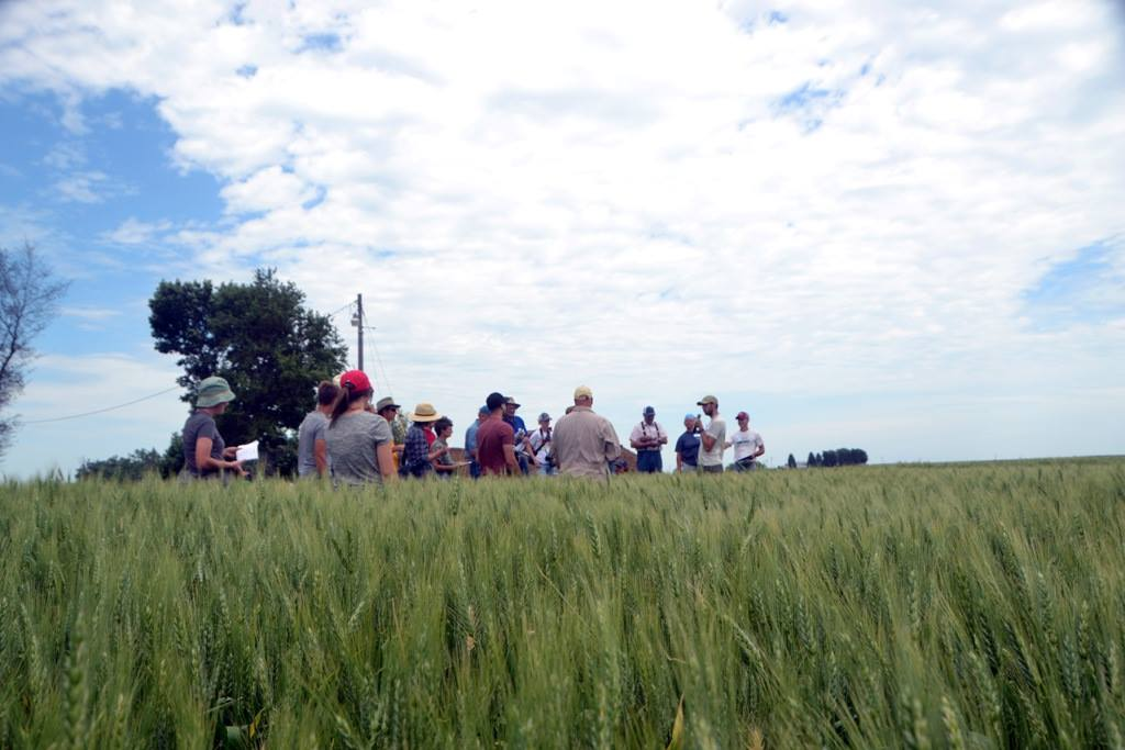 Field day participants share soil health and pollution-reduction strategies on Nathan Anderson’s farm.