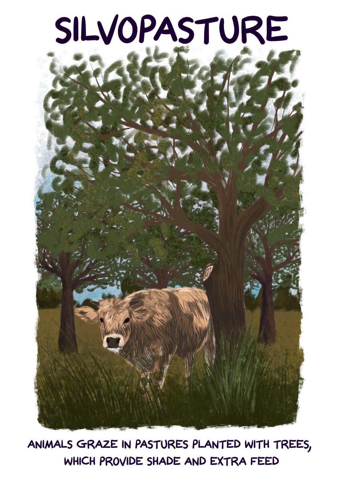 Sauder’s system—where his cows will soon graze among trees instead of in fully open pastures—is called silvopasture. And it’s one of several practices that fall under a broader agricultural approach called agroforestry, or farming with trees.