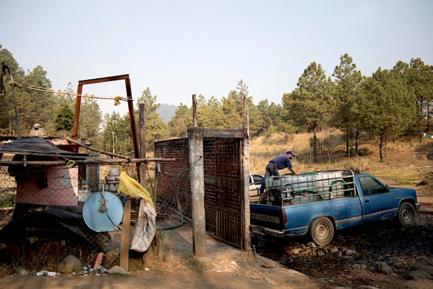 Avocado farmers fill large tanks like this daily at the community spring, reducing water availability for the community and its curanderas. (Photo credit: Monica Pelliccia)