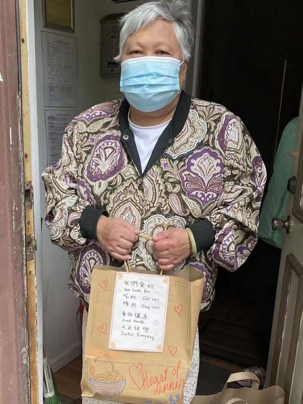 Hong Kong native Zoe Lau, who works part-time with Heart of Dinner as a volunteer communications coordinator, speaks fluent Cantonese and Mandarin and spends several hours every week calling elder beneficiaries to confirm their weekly deliveries in their native languages. She began attending weekly bag decorating sessions in New York City during the pandemic to feel closer to her grandmother in Hong Kong, who she was unable to visit due to COVID-19 travel restrictions.