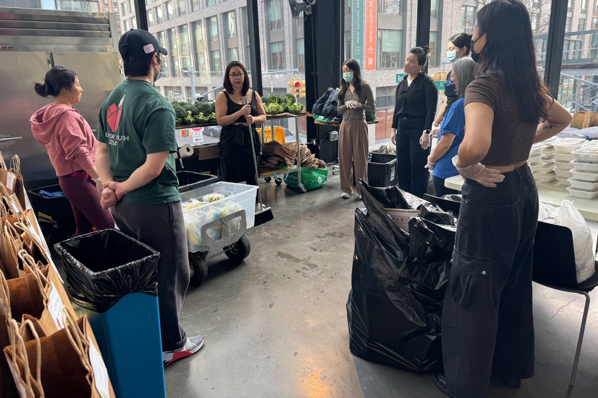 On a frigid Wednesday afternoon in February, about a dozen volunteers met at La Marqueta, a Latin food hall in East Harlem, to pack 75 gift bags with groceries like firm tofu, Japanese sweet potatoes, bok choy, and bananas, along with plastic to-go containers filled with stir-fried pork, purple eggplant, and white rice prepared by a partner restaurant in Chinatown. All meals included in Heart of Dinner care packages come from local Asian-owned restaurants.