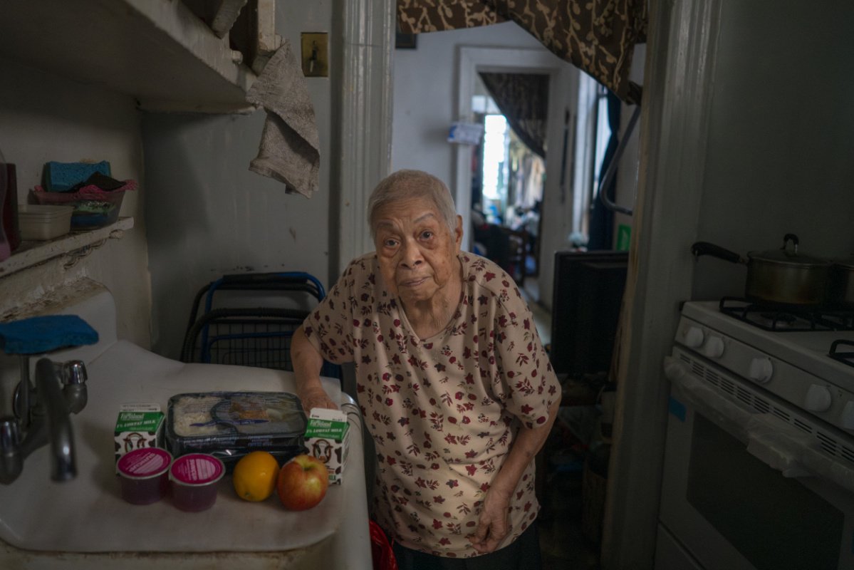 Many elders describe certain foods they miss, so Ng works with Citymeals on Wheels to provide them. (Chicken with oyster sauce, baked pork, and Chinese-style bok choy are favorites.) Here one of Ng’s volunteers brings food to You Hai Chen.